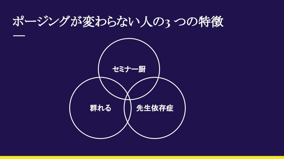セミナーに頻繁に行く人のことです。このような人の特徴を3つほど挙げてみます。